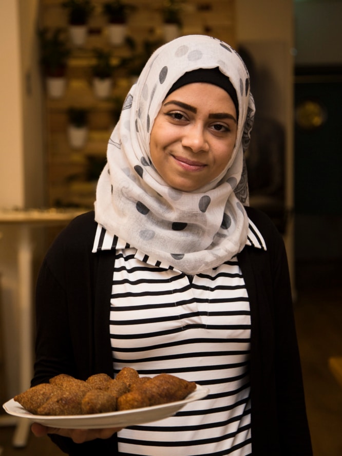 Samira huyó a Trípoli al estallar la guerra, a casa de la tía de su madre. Allí fue donde aprendió a cocinar, porque las 30 bocas que compartían aquel mismo techo no se alimentan solas. En Trípoli trabajó un día como peluquera, «pero el salón de belleza estaba lejos de la casa, y la guerra hizo a sus hermanos sobreprotectores», traduce Malak, una libanesa que hace las veces de traductora y que colabora como voluntaria con Madrid For Refugees, quienes junto con ACNUR organizan Refuge Food Festival #ConLosRefugiados, un festival culinario que pretende, a través de la gastronomía, «cambiar la percepción que se tiene de los refugiados y promover su integración socioprofesional».