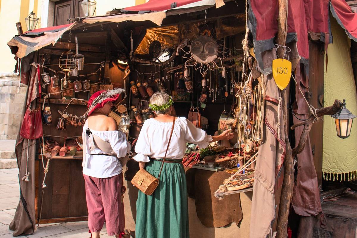 An mehr als 80 Ständen auf dem Rathausplatz und im historischen Stadtkern können Sie unter anderem Gegenstände aus Holz, Leder, Keramik, Schmuck, traditionelle Süßigkeiten, Honig, Käse und Wurstwaren kaufen.