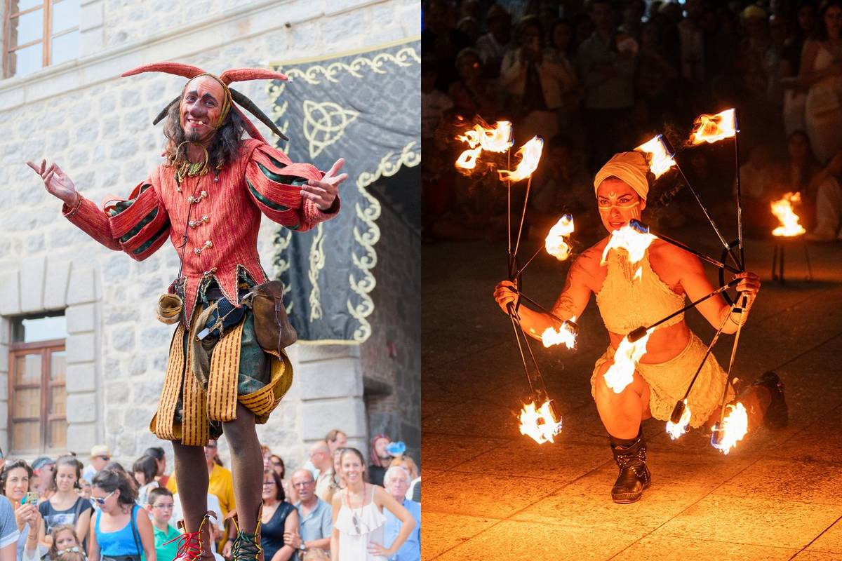 Abends, sowohl am Freitag als auch am Samstag, gibt es Feuer- und Tanzvorführungen von Nazareth, einem Tänzer und spezialisierten Künstler mit Erfahrung auf mittelalterlichen Märkten.