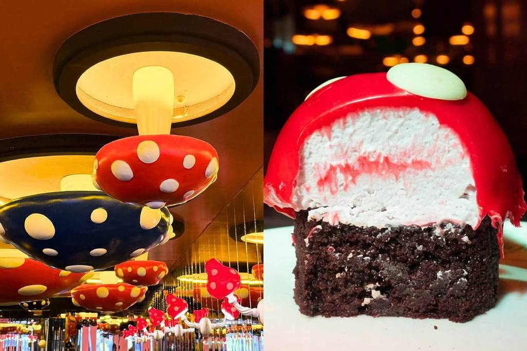 Die Einrichtung des Lokals ist bis ins kleinste Detail durchdacht und lässt die Welten wiederaufleben, durch die sich Mario Bros. bewegt. Besonders auffällig sind die Decke voller berühmter roter Pilze, die Fragezeichen-Kisten, die Belohnungen versprechen, und die Piranha-Pflanzen. Sogar Glasfenster sind zu finden , die weitere Ikonen und Figuren wie Prinzessin Peach widerspiegeln.