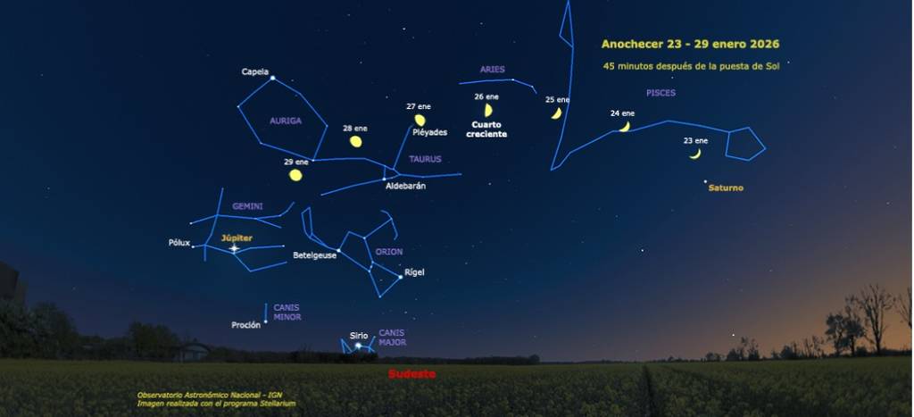 Im Jahr 2026 wird der Schneemond am Sonntag, dem 1. Februar, seine Vollmondphase erreichen, mit dem Zeitpunkt der maximalen Fülle um 23:09 Uhr spanischer Zeit. In Madrid wird der Mond am Abend über dem Horizont erscheinen und die ganze Nacht über sichtbar bleiben, mit einer Beleuchtung von fast 100 % und einer Bahn, die im Laufe der Stunden an Höhe gewinnt. Die besten Zeiten, um ihn zu sehen, sind von der Abenddämmerung bis Mitternacht, wenn die Scheibe schon hoch und hell steht, und dann wieder in den frühen Morgenstunden, wenn der Himmel dunkler und stabiler ist, für alle, die Fotos machen oder ihn einfach in Ruhe beobachten wollen. Nach den Vorhersagen der AEMET wird es ein Tag mit Wolken und Aufklarungen sein, zwischen denen der Mond zu sehen sein wird.