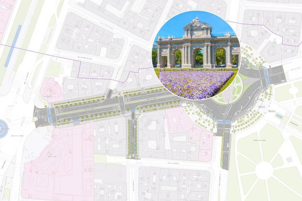 The project, with an investment of €6.1 million and the approval of UNESCO and the Local Historical Heritage Commission, seeks to restore the monumental character of this section of the Paisaje de la Luz (Landscape of Light) and give pedestrians back their prominence. The new section of the street will include: two lanes for general traffic and one bus lane in each direction, as well as a central promenade approximately 3.8 meters wide that will serve as a pedestrian boulevard and viewpoint towards the Puerta de Alcalá, and a segregated bike lane on the south side, protected from traffic.
