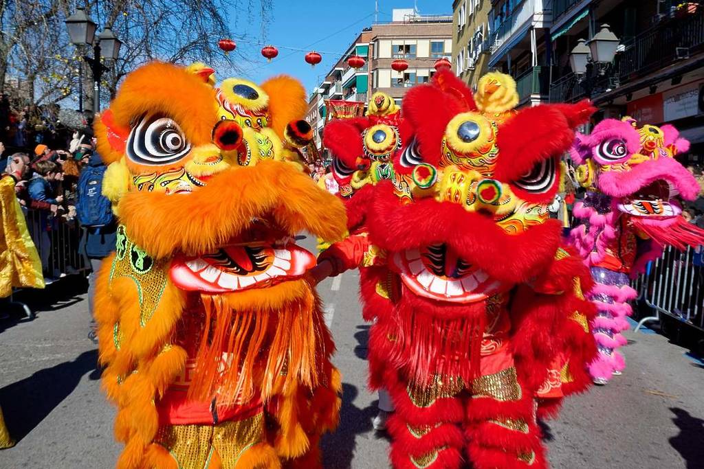 Le cortège mêle tradition et imaginaire chinois : dragons et lions articulés, majestueux chevaux gonflables en l’honneur du Cheval de Feu, troupes vêtues de costumes venus de Chine, éventails, parapluies en soie, groupes de danse folklorique, écoles d’arts martiaux et associations de quartier et chinoises du district. La musique live, les tambours, les gongs, les mélodies traditionnelles adaptées à des formats plus contemporains, rythment un défilé qui rassemble chaque année des dizaines de milliers de personnes, comme le montrent les données des éditions précédentes avec jusqu’à 42 000 participants au défilé et 25 000 au feu d’artifice, selon les données officielles communiquées par la mairie de Madrid.