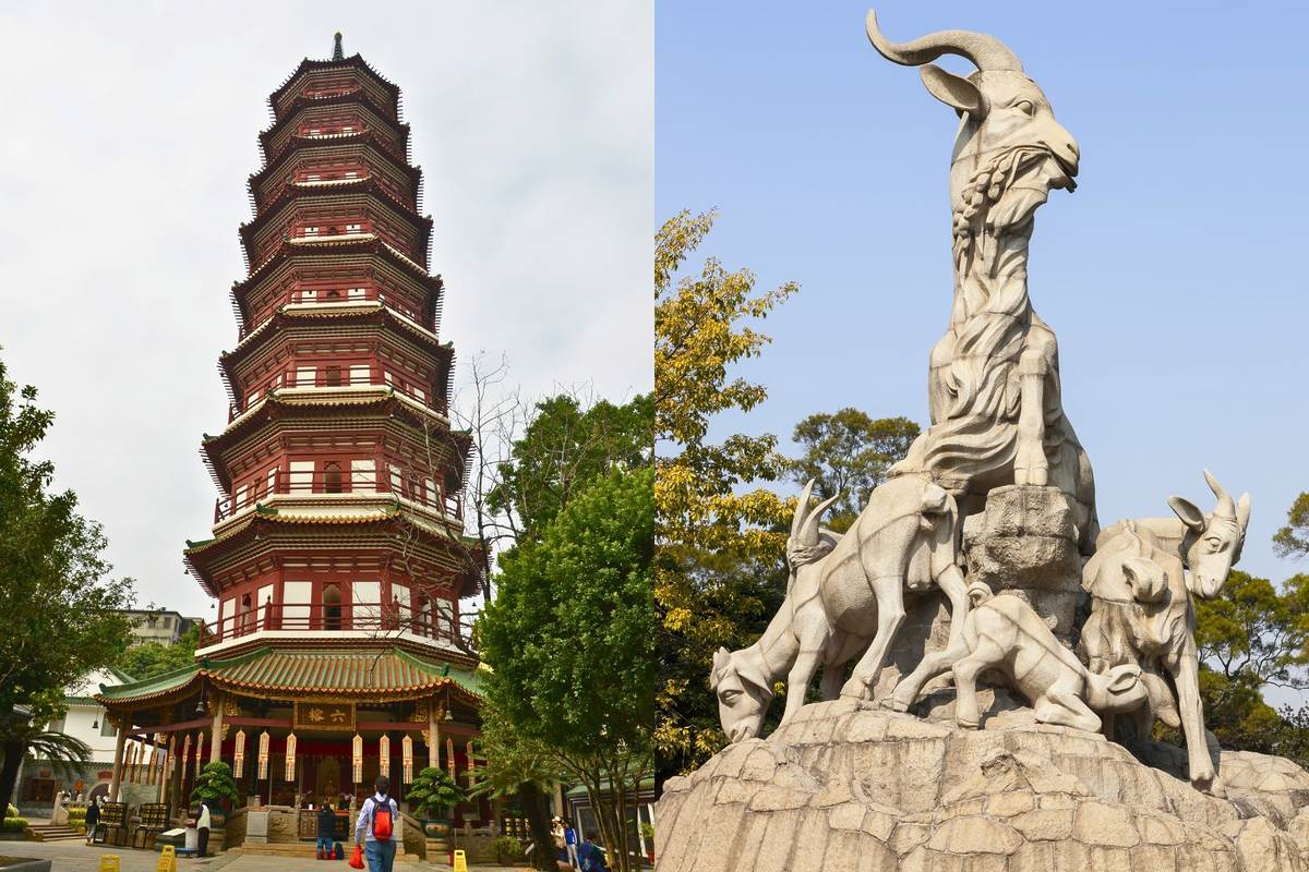 Uno de los principales símbolos de la metrópolis son las cabras, que representan la prosperidad y están muy presentes, tal y como se puede ver reflejado en la icónica Estatua de las Cinco Cabras del Parque Yuexiu. El otro apodo de Guangzhou es “la ciudad de las flores”, ya que su clima cálido y subtropical permite que la vegetación florezca durante todo el año.